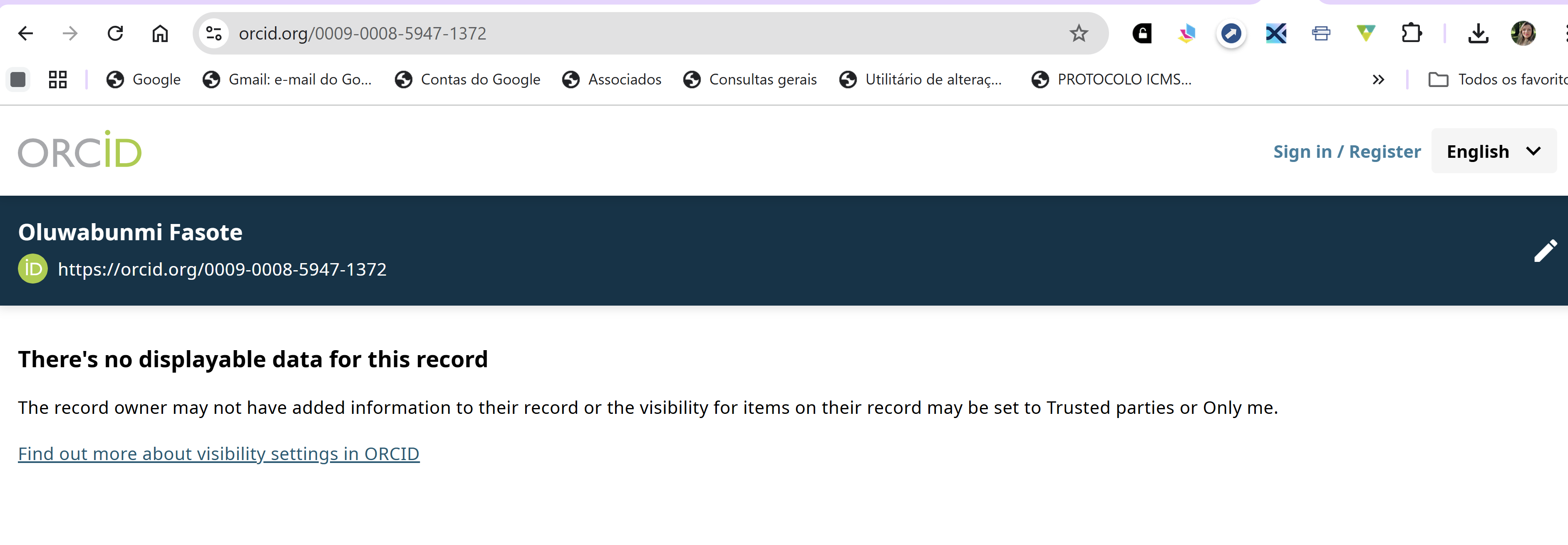 There is an ORCID under this name but no record